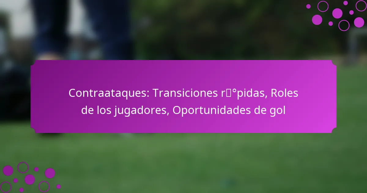 Los contraataques en el fútbol son jugadas dinámicas que ocurren inmediatamente después de recuperar la posesión, diseñadas para capitalizar el desorden del oponente. Esta estrategia enfatiza transiciones rápidas de defensa a ataque, requiriendo que los jugadores actúen de manera ágil y cohesiva para crear oportunidades de gol antes de que el equipo contrario pueda reorganizarse. El papel de cada jugador es crucial en este proceso, con responsabilidades específicas que mejoran la efectividad del contraataque.